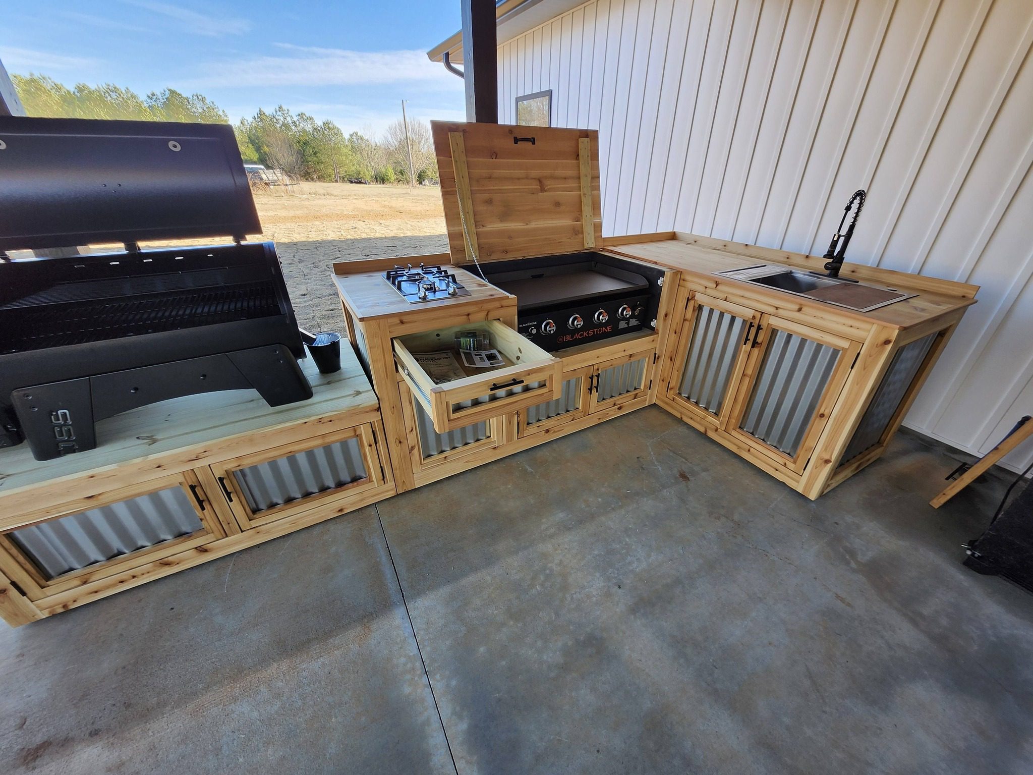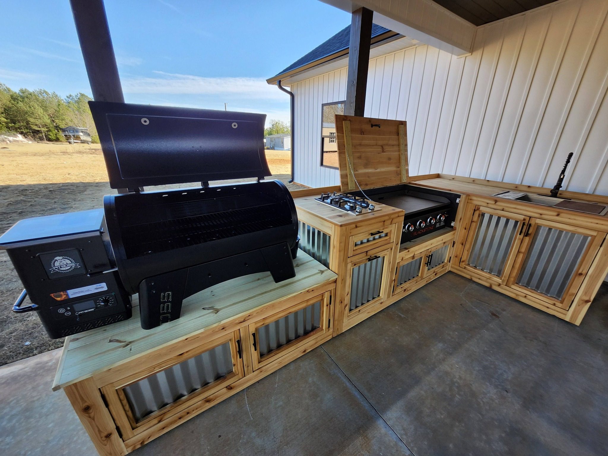I design and hand-build custom outdoor kitchens from real wood, made to fit your space and how you cook — no kits, no mass production.